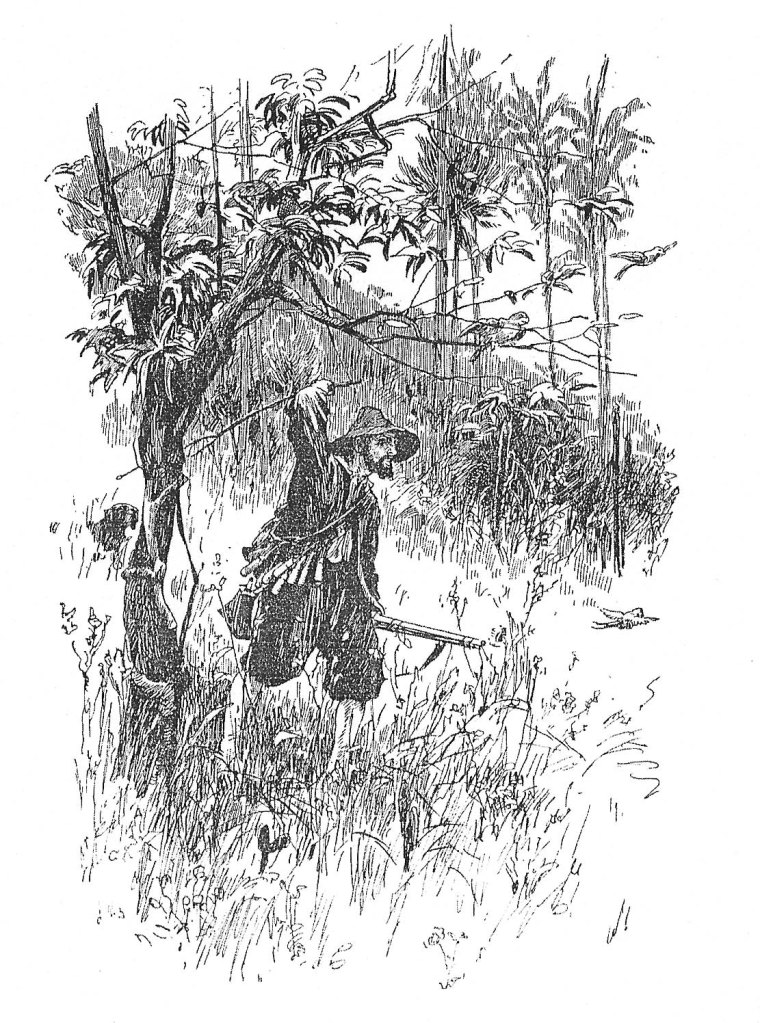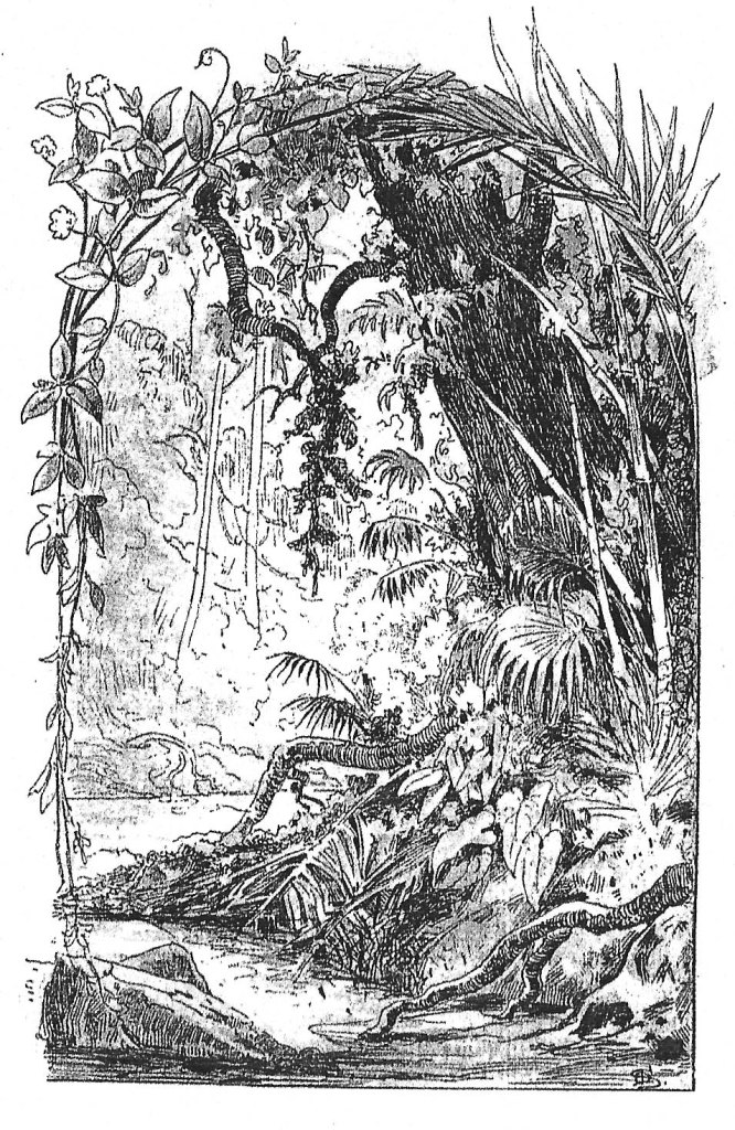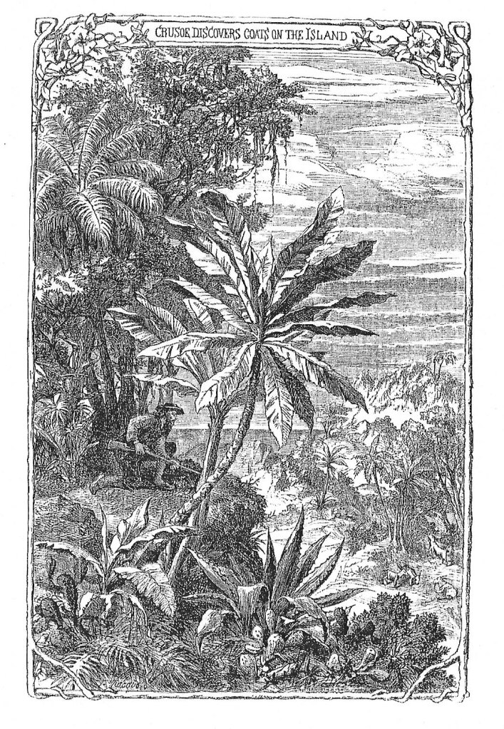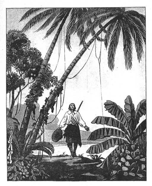 L’ esplorazione dell’isola è forse una delle fasi più sperimentali nelle quali gli illustratori si cimentano nella raffigurazione di un Eden perduto e della sua meravigliosa scoperta. Nella raffigurazione di questo altrove esotico e ammaliante, ricco di rapinosi scorci di paesaggio e di una vegetazione lussureggiante, possiamo rilevare un parallelismo con la suggestiva «edizione Curmer (1838) di Paul et Virginie di Bernardin de Saint-Pierre o con gli autori delle infinite variazioni sul tema dell’avventura offerte dalle incisioni dei romanzi di Jules Verne, Karl May o T. Mayne Reid»[7]. Le immagini appartenenti a questo momento narrativo rappresentano quell’irraggiungibile luogo inconscio nel quale il sodalizio tra natura e innocenza emerge con forza. Paravia e Hoepli vedranno una competizione fra gli illustratori (tra cui Maximilian Shäfer (1851-1916), Thomas Mc Quoid, Walter Zweigle (1859-1904), Emile Bayard (1837-1891), Carlo Nicco (1883-1973) ed Alfredo Vaccari) impegnati nel delineare repertori geografici di esplorazione e di viaggio, impreziositi dal rigoglio di una mistica vegetazione tropicale.