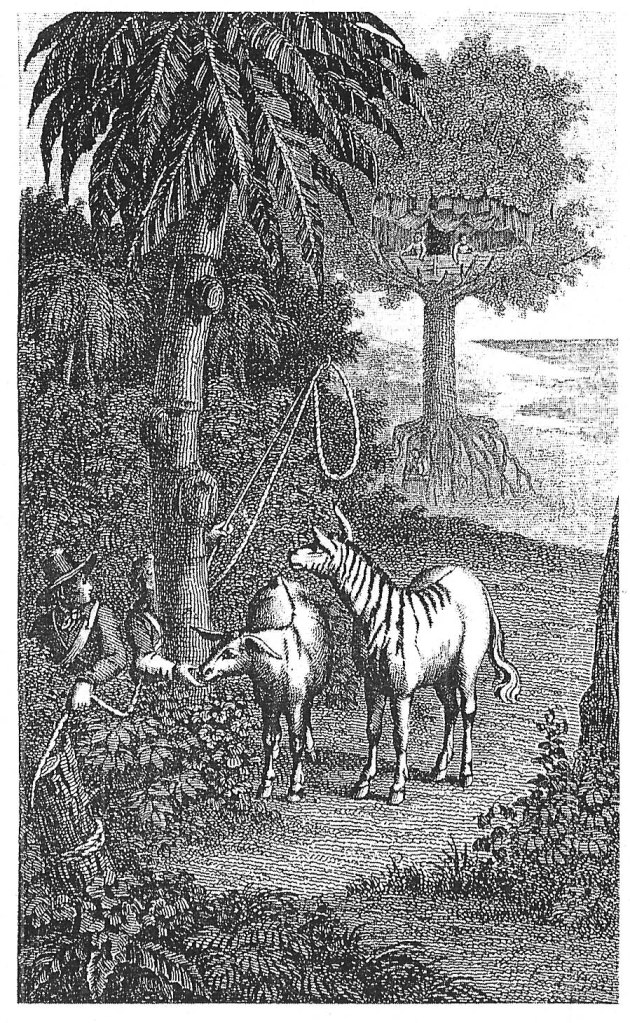 Nelle edizioni del 1827 ritroveremo un orientaleggiante Robinson ambientato in un contesto squisitamente allegorico, frutto dell’elaborazione di John Bewick e Louis de Sainson.