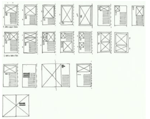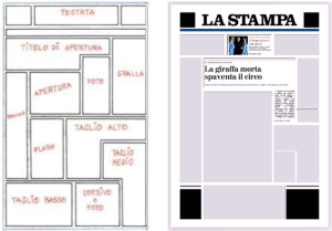 Consiste nell’impostare un disegno della pagina entro la quale posizionare attraverso le rispettive gabbie i vari “pesi” grafici, ovvero titoli, sommari, didascalie e immagini…