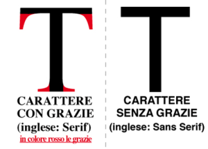 Una differenziazione importante da fare è quella tra i caratteri tipografici con grazie e quelli senza grazie.