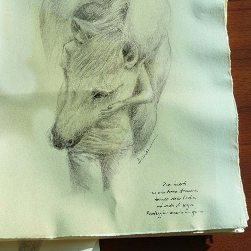 Questi disegni nascono in treno. Nei tempi sospesi dei viaggi da pendolare, dove non sei mai davvero nel posto in cui ti trovi. È lì che qualcosa si allenta. E arriva.